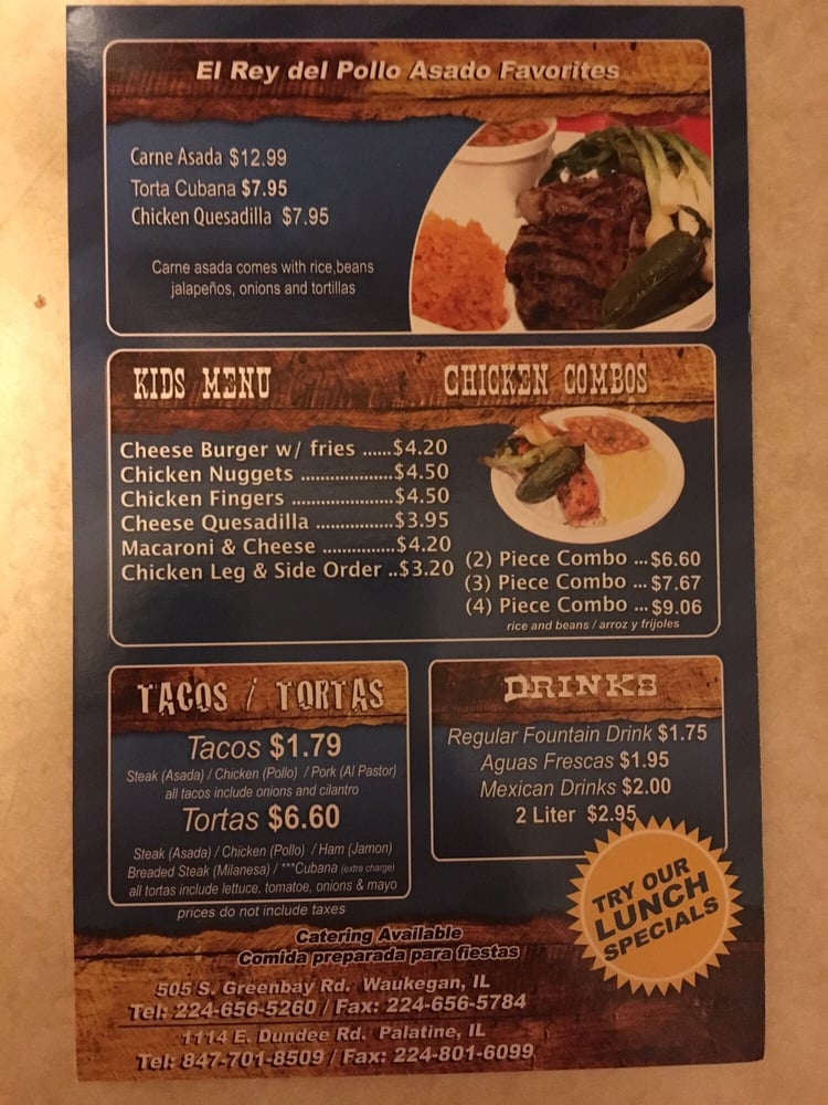 Introducing the menu at El Rey Del Pollo Asado is a delightful experience for Mexican cuisine lovers. The restaurant offers a variety of dishes, including their famous chicken combo served with rice and beans. Customers rave about the authentic carne asada tacos and the juicy roasted chicken, which is a must-try. The sides, such as the Puerto Rican style beans and the cebollitas (cooked green onions), complement the main dishes perfectly. The restaurant's generous portions, delicious salsas, and affordable prices make it a favorite spot for many. With excellent service, a drive-thru option, and a casual atmosphere, El Rey Del Pollo Asado promises a satisfying dining experience for all types of diners.